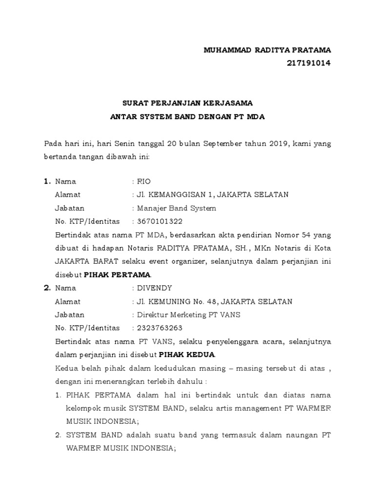 Draft Kontrak Artis Waybe Musik Indonesia Zigaz Pdf